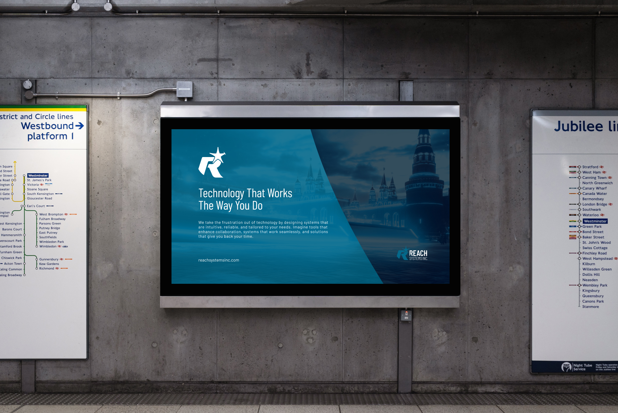Reach Systems partnered with us to revitalize their brand and elevate their online presence. Through strategic design, innovative web development, the creation of a Brand Identity Guidelines resource, and targeted Out-of-Home ad placement, we redefined their identity and expanded their reach. The result positioned Reach Systems as a modern, approachable leader in IT services, with a bold, cohesive brand presence both online and in the real world.